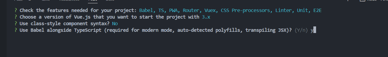 - 如果你选择“Y”,你将在你的Vue项目中同时使用Babel和TypeScript。